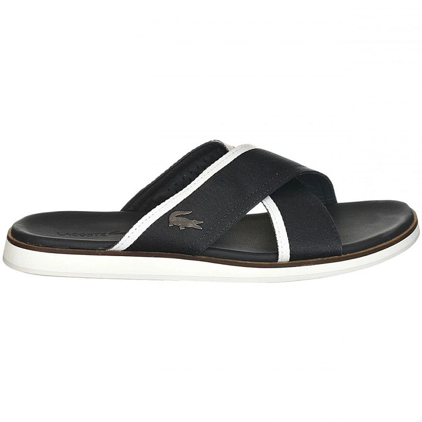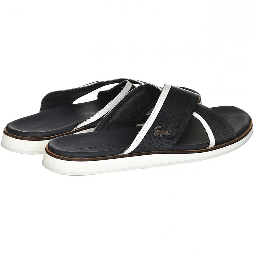 Мъжки чехли Lacoste, подходящи за всеки ден. Леки и удобни, с мека стелка от естествена кожа. Съчетават се добре както с градски ежедневни дрехи, така и с подходящо за плаж или басейн облекло.