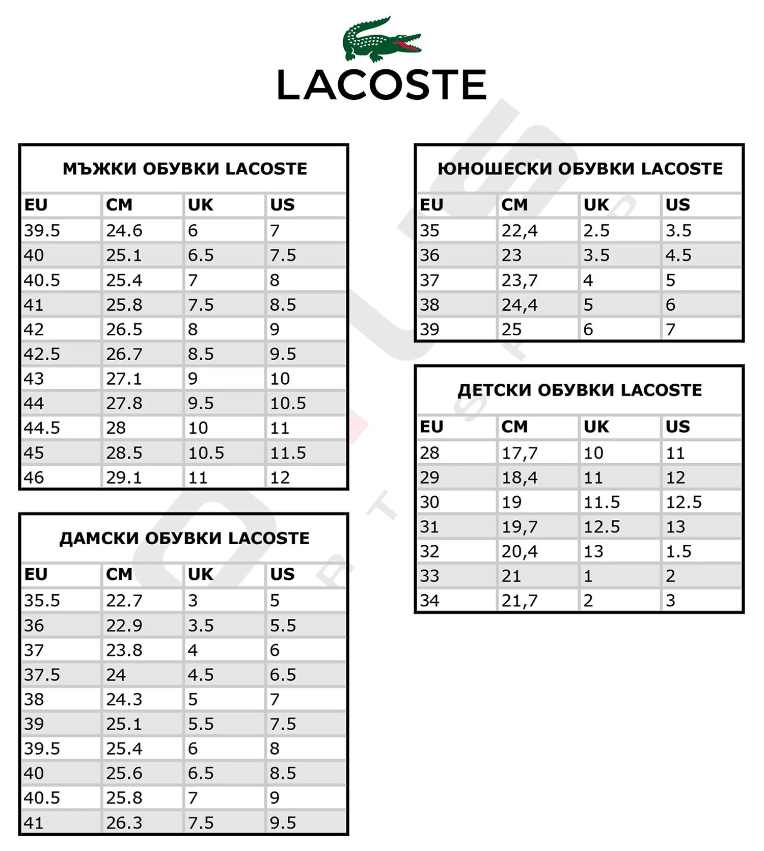 Таблица с размери Доставка