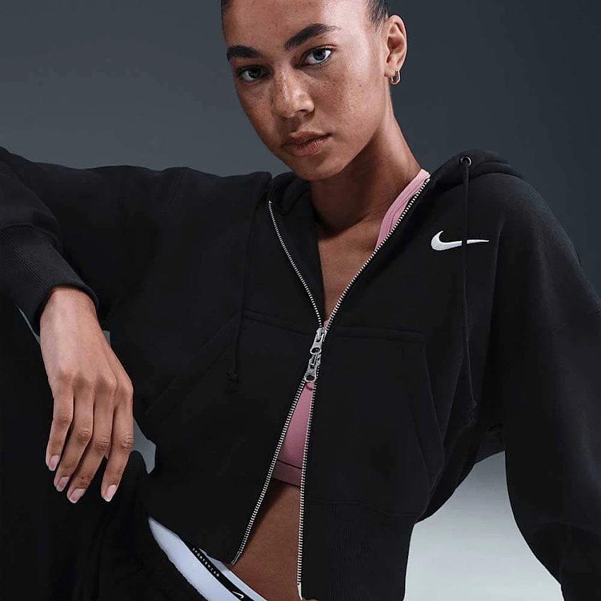 ДАМСКО ГОРНИЩЕ NIKE HV2426-010 NSW PHNX FLC CROP FZ HDY ЧЕРНО