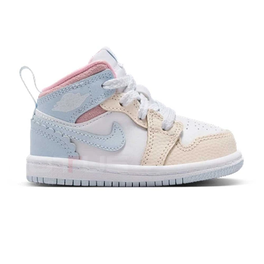 ДЕТСКИ ОБУВКИ ЗА МОМИЧЕ NIKE IB7055-403 JORDAN 1 MID SE TD БЕЛИ/СВЕТЛОСИНИ